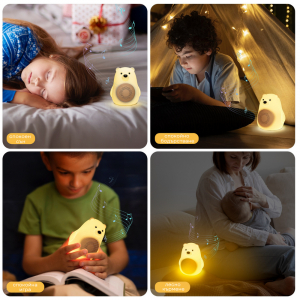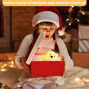 Лампичка с опция за светлина в осем различни цвята, като цветовете се сменят чрез потупване на мечето