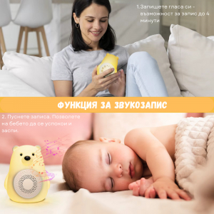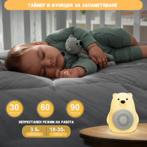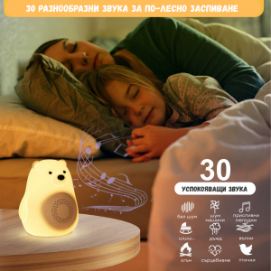 30 различни звука за всяко предпочитание: естествени звуци от природата (вълни, дъжд, сърцебиене, огън, птича песен и др.), бял, розов и кафяв шум, приспивни мелодии, звуци от техника, майчиното шъшкане