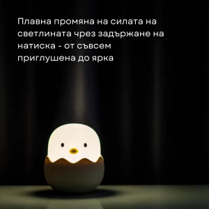 С плавно модулиране на светлината от ярка към задимена. Интуитивна и лесна за използване от дете.